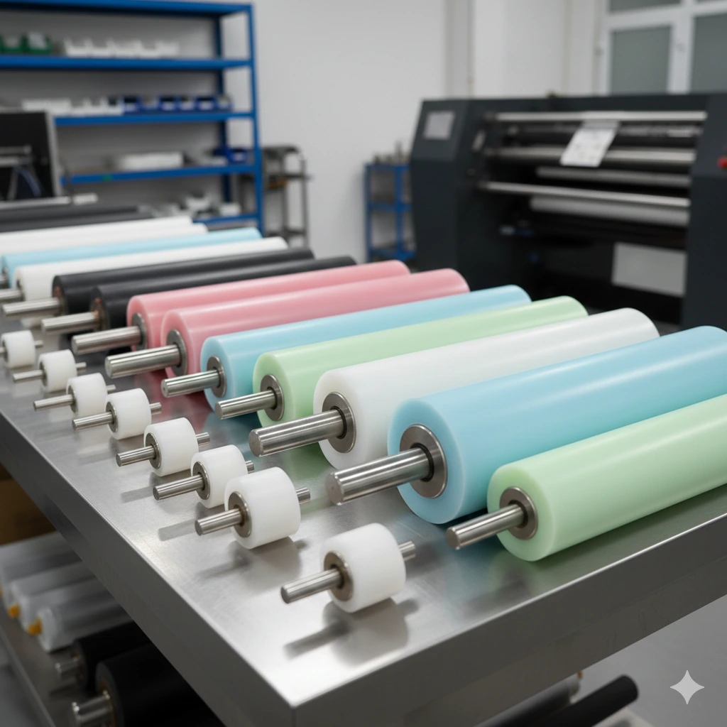 Matbaa ve endüstriyel üretim hatları için özel ölçülerde üretilen kauçuk merdaneler, yüksek yüzey kalitesi ve dayanımıyla baskı ve üretim performansını artırır.